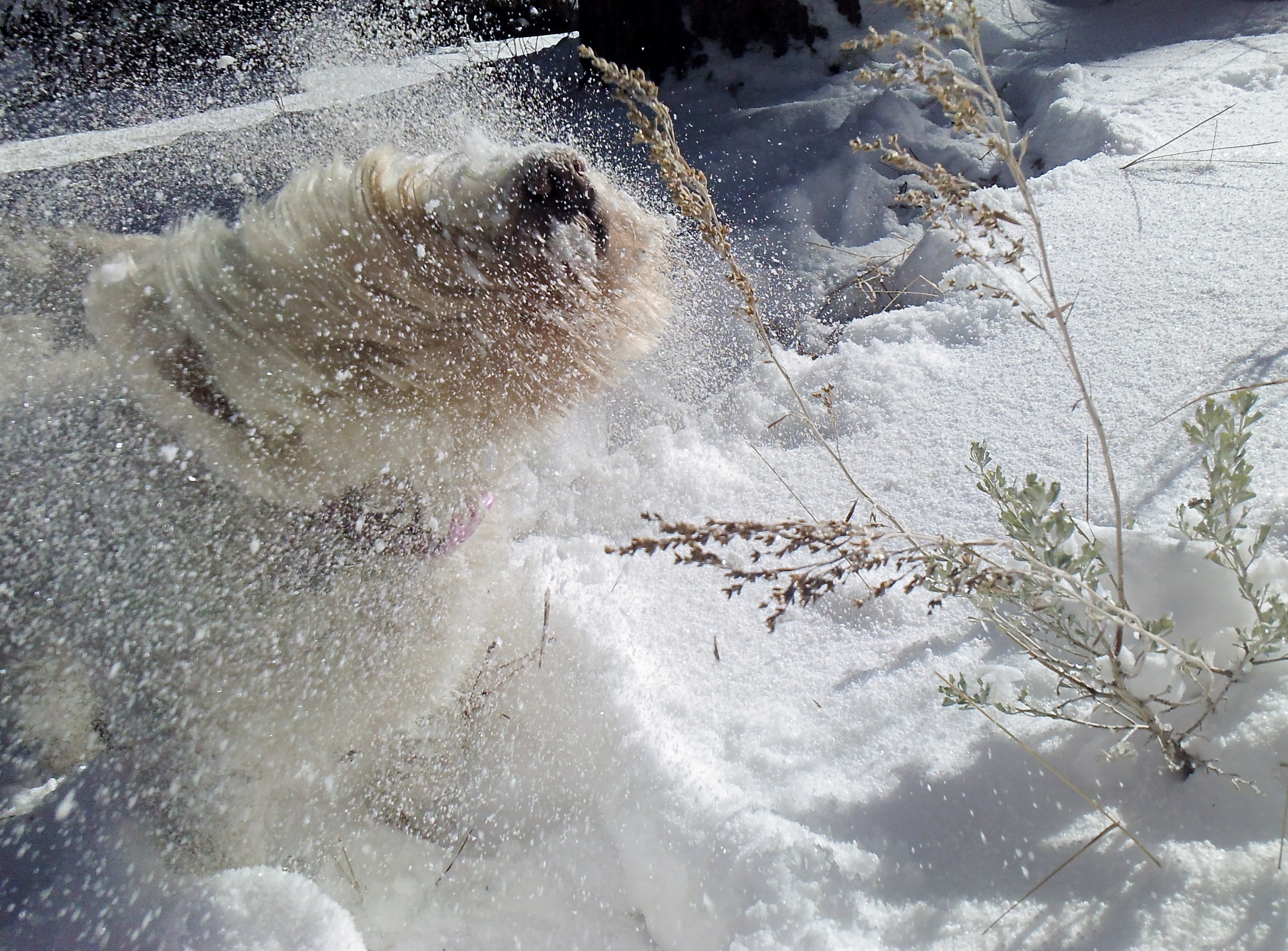 Daisy shaking in snow