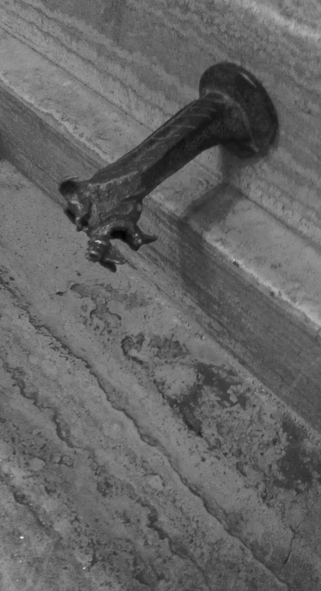 Spigot in the ladies room sink trough
